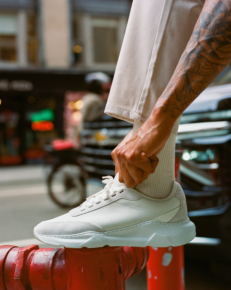 The Manhattan City Runner was designed as a versatile, running-inspired sneaker built for everyday urban life. My goal was to create a style that delivered the comfort and ease of an athletic shoe while elevating it with a more luxurious perspective. Crafted in Portugal with premium leather and suede, signature tack stitch detailing, a lightweight EVA outsole, and a cushioned leather lined footbed, it was made to feel easy to break in, effortless to wear, and refined enough to move seamlessly through any part of the day.
